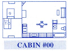 Cottage #00 has 2 bedrooms with twin beds, one bathroom and sleeps up to 7 people. Cottage #00 also has a fireplace and dishwasher.