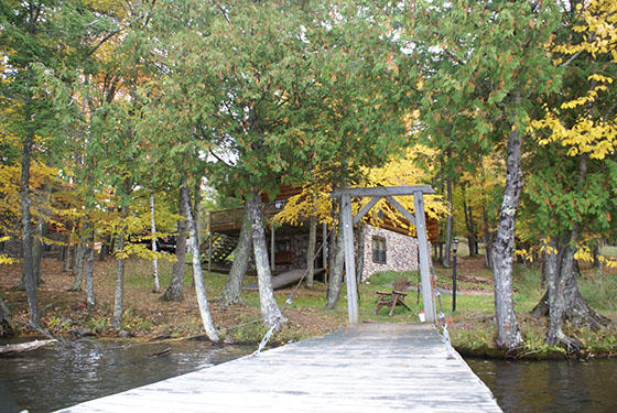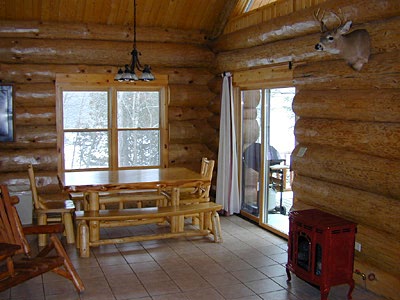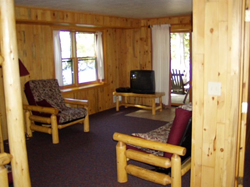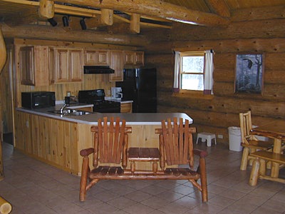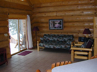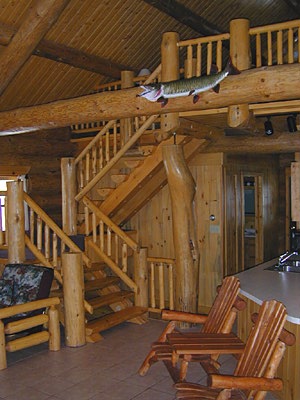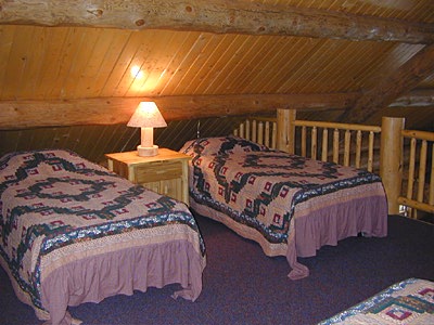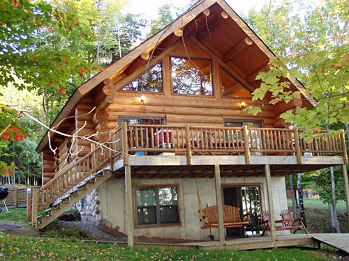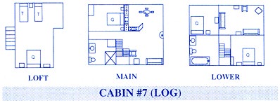 Cottage #7 is a log cottage with 2 levels plus a sleeping loft. It has 3 bedrooms, 2 bathrooms and sleeps up to 14 people. It also has a fireplace and dishwasher.